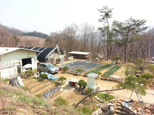 작은 임야로 둘러쌓인 지형의 상단에 자리한 토지로