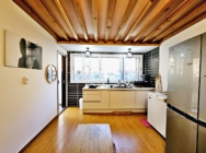 주방옆에 별도 주방공간이 룸처럼 크게 있고 좌식 큰테이블이 있음
