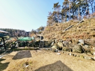 임야 경계 망이 설치되어 있으며 한쪽에 야생 닭장을 만들어 놓으셨음