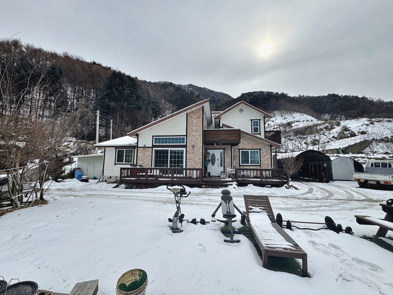 | 간략설명 | 북서향, 대592㎡(179.08평), 임2839㎡(858.8평), 도50㎡(15.13평), 정화조 / 개별지하수 - 주택기준으로 북서향이며 흑천방향으로 마을내려다보는 탁트인 전망 - 2013년도 준공된 목조 구조의 2층주택 연면적: 27.12평, 1층 22.41평 방 1, 거실1, 주방 1, 욕실1 , 다용도실 1, 2층 4.71평 방1, 별채 약 8평 유실수 식재(감나무, 복숭아 등), 컨테이너 1동 일부 토목 - 야외 수도, 동산 - 자연림 상태, 아름소나무 20수 주차장겸 창고 블럭 및 비닐하우스, 원목 데크, 야외테이블, 텃밭 |