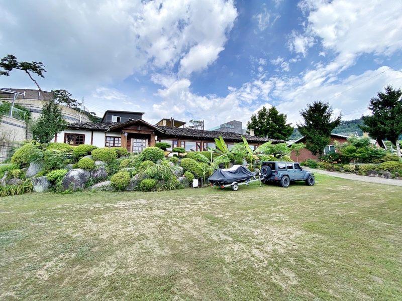 너와집 지붕과 한옥 스타일로 서가래와 대들보가 노출되어 특색있으나 전체적으로 수리는 필요해 보임