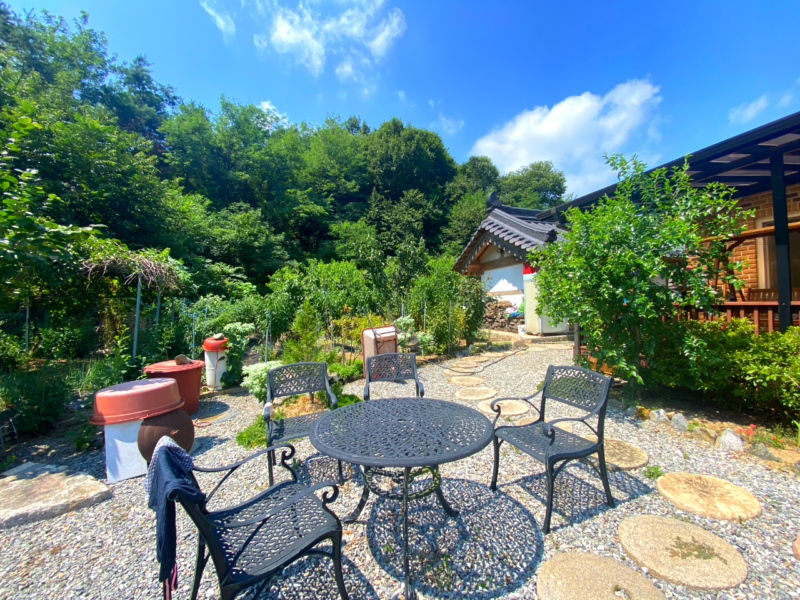 전통 한옥느낌의 땅 넓은 통나무 목조주택