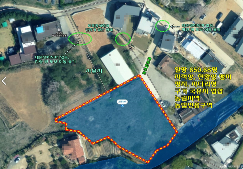 농림지역 / 농업진흥구역,평탄지/ 지목상 논이나 성토하여 밭으로 되어 있음/ 휴경상태