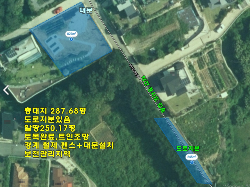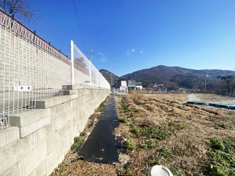 남동향으로 트인 조망,보전관리지역,보강토블럭 토목완료, 평탄지,경계는 철재 휀스+대문 설치