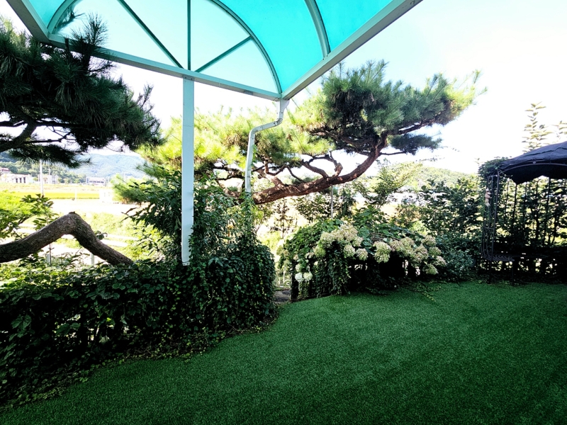 남서쪽 소나무조경 및 하천국유지부분에 산책로같이 연결해서 추가 정원조경해놓으신 상황이며