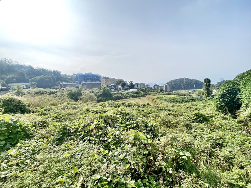 간략설명 | 남서향이며 트인 전망 나옴,계획관리지역, 완경사,부정형 저지대의 완만한 경사 및 평지 위주,두둑 및 고랑이 보여 휴경 상태로 보임 덩굴식물 및 잡풀이 전반적으로 우거진 상태 , 4m 포장도로, 접한도로와 지대 같으면서도 많이 낮은 곳이 있어 경사짐 버스정류장 약150m, 지방도 약1km 거리 |