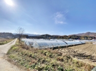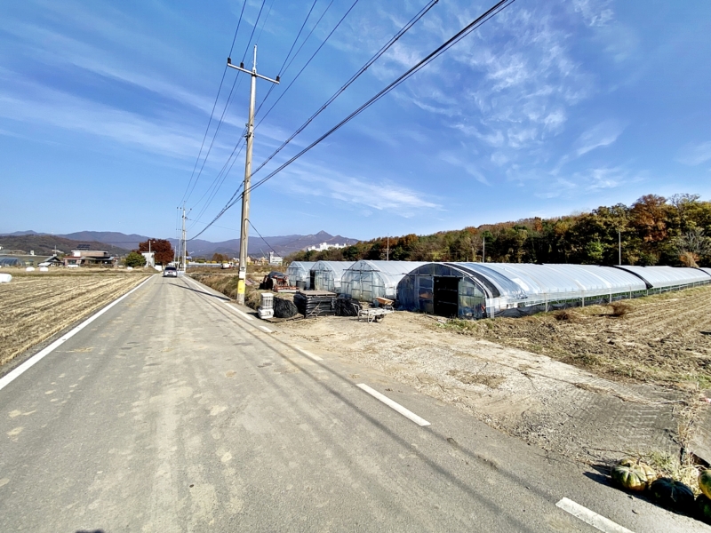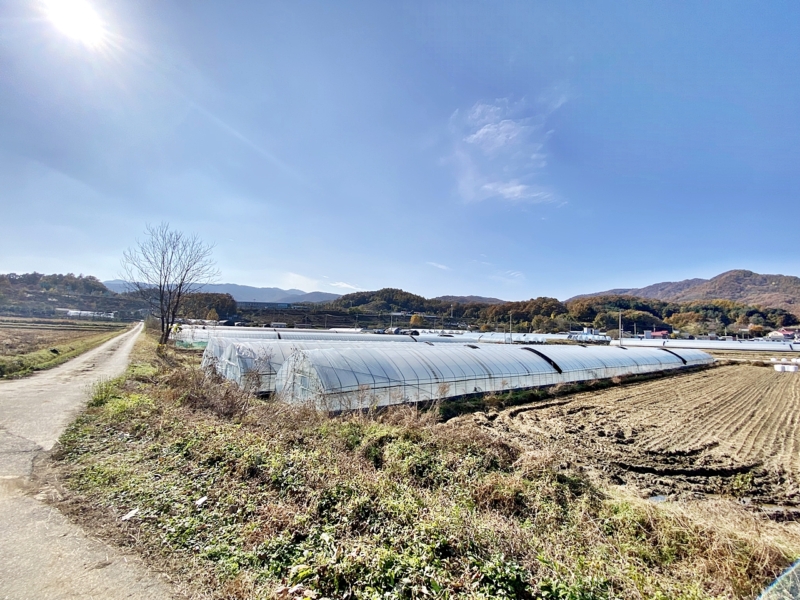 필지 동쪽은 도로보다 필지가 낮음,농지 임대 중으로 비닐하우스 4동 설치되어 있음