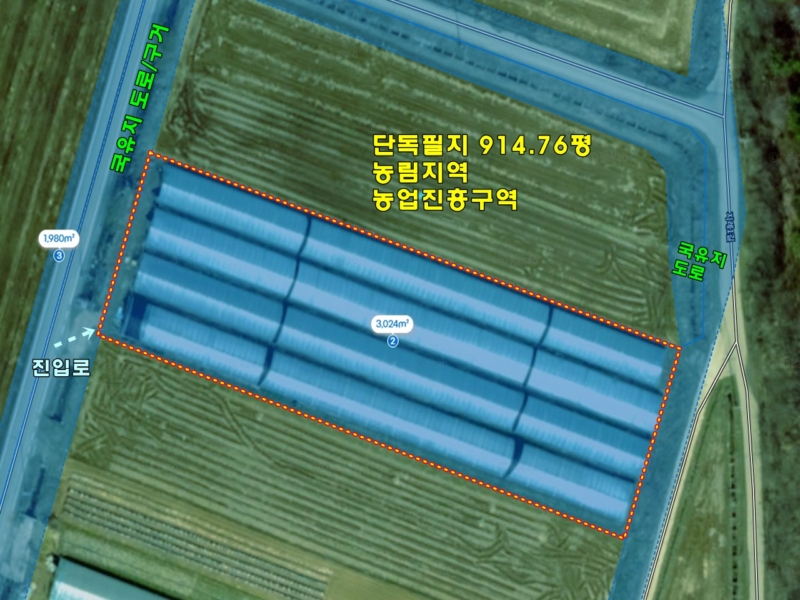 서측 4m 아스팔트 포장도로, 공도,동측 3m 시멘트 포장도로, 공도,농업진흥구역  내 위치