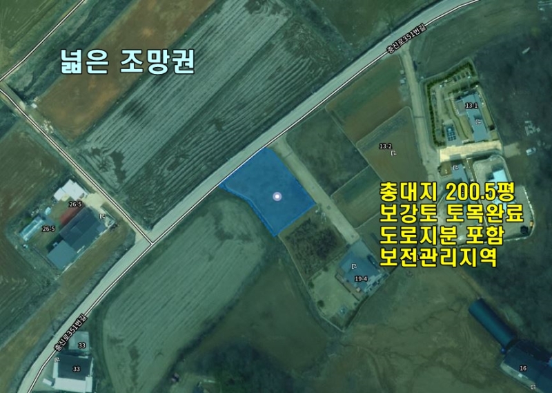 | 간략설명 | 전체적인 방향은 북서향이며,정면 농경지로 전망은 서~북~북동으로 나옴 보전관리지역, 보강토 토목,평탄화 완료, 단지내도로 우수관 공사완료 진입도로를 따라서 6개의 택지로 조성되어 있음,5m 포장도로, 도로지분 보유 남한강 인접한 지방도 가까운 마을 내 택지,2차선 도로 약 200m 거리 버스정류장 약 500m 거리,양평역 및 생활권 약 3.1km 거리 |