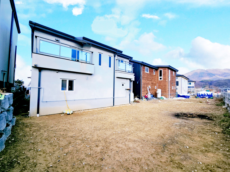 전기통신 지중화, 2단지형으로 앞마당은 잔디 및 경계 정원수 등 기본조경, 뒷마당으로 텃밭공간 있음