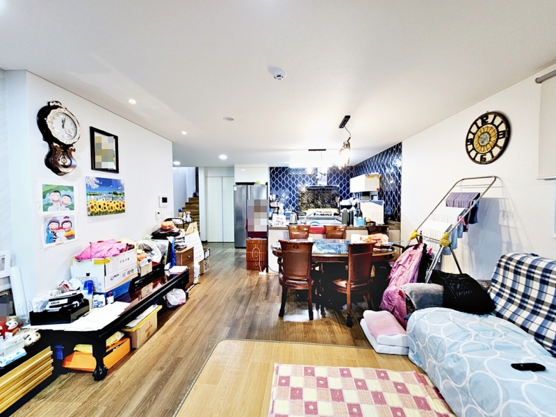 뒤쪽 작은방 1개 오픈형 다락 복층공간 있음 (천장 매립형 계단) / 오수관 연결됨, 상수도 사용,