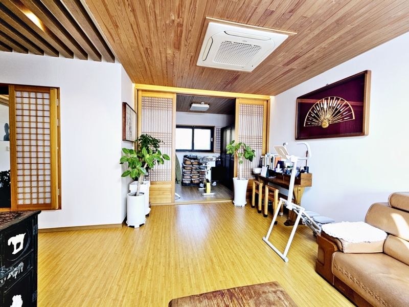 황토방, 거실아트홀, 편백나무지붕, 내부 한옥 스타일의 인테리어