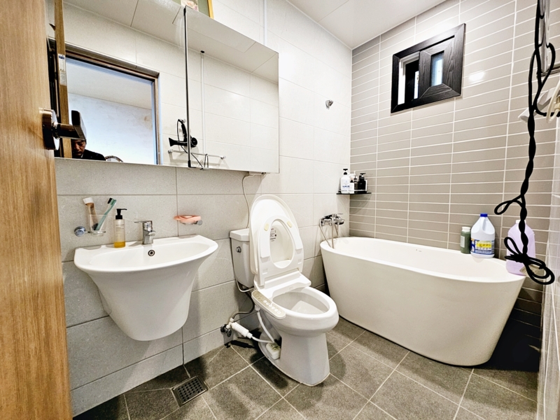 주택현관문 앞 썬룸 공간 있음,방 3개 (거실쪽 방1개는 미닫이문), 거실, 주방, 욕실 2개