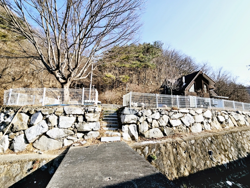 | 간략설명 | 도로쪽 타인임야 토지 일부 사용중 ,(하천부지보다 더 넓게 쓰고 계신것같은데 평수확인 안됨) 소유자분께 문의드렸더니 예전 토지임야 소유자인 할아버지 살아계실때 경계 넘어와 있는상태에서 사용하고계신거 다들 인지한 상태였고 따로 비용내는거 없이 지금까지 편하게 사용하고 계신다고 함. 실사용 대지 200평 전후는 되어 보임.주택 방향은 남서향이며 전망은 서~북서향으로 나옴 2020년 준공, 목조, 0/2층 구조,주택 20.63평, 컨테이너 창고 3.6평 중문, 평데크, 2층 데크, 이중창 ,지하수, 정화조, 전기판넬 1층 거실 벽난로 사용으로 겨울에도 내부 춥지않다고 하심. 주말주택으로 이용중이며 겨울에는 잘 안내려오신다고함. 1층 방1개, 거실, 주방, 욕실 1개.2층 방1개, 거실, 창고공간,경계 철재휀스, 입구 콘크리트바닥 여유있는 주차공간 주택 안쪽으로 텃밭 공간 있음, 야외 수돗가.4M 포장도로, 사도, 현황도로 하천 접해있는 마을 안쪽에 자리잡은 주택.2차선 도로 및 버스정류장 약 250m 청운면사무소 및 생활권 약 8.5km |
