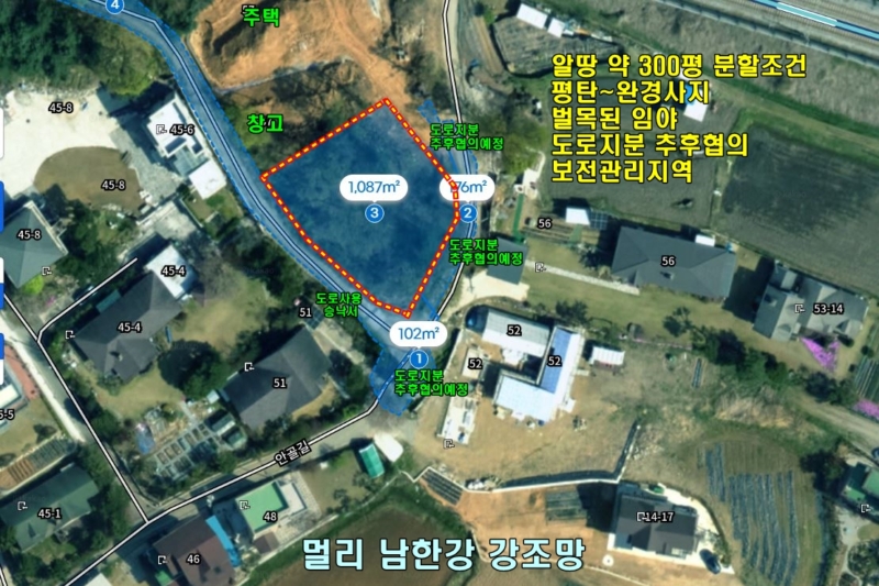 남향, 임992㎡(300.08평), 평탄지/벌목된 임야,  버스/2차선도로 700m, 편의시설 / 양평역 3.5km