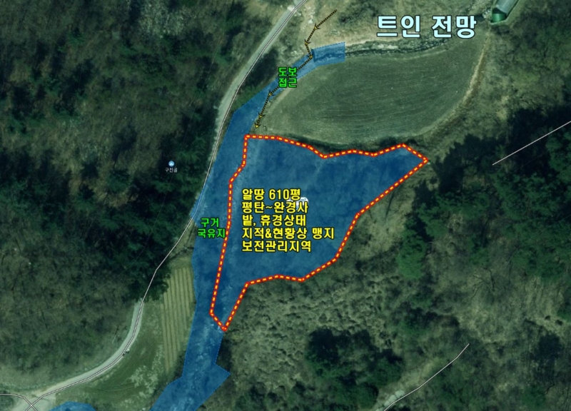 보전관리지역, 평탄지~완경사지,전체적으로 약간의 완경사가 있으나 사실상 평탄지에 가까움