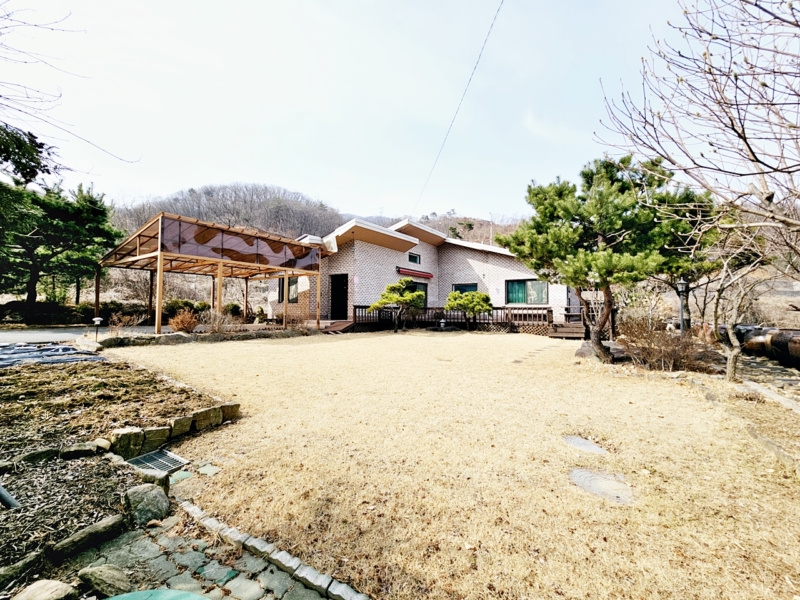 1층 방3개, 거실, 주방, 욕실 1개,2층 서비스다락 오픈형 복층구조, 보강토 토목, 평탄지 소나무 및 잔디 정원조경, "ㄱ" 데크