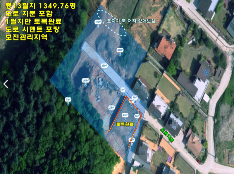 기타(5필지) 토목 미완료 ( 현재 경계 말뚝만 박혀 있는 상태라고 함)​상태로