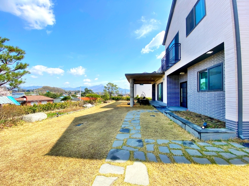 시스템에어컨, 붙박이장 옵션, 평잔디, 디딤석, 텃밭, 경계 조경, 주차는 대문 안쪽 포장된 공간에 3대 이상 넉넉하게 가능함