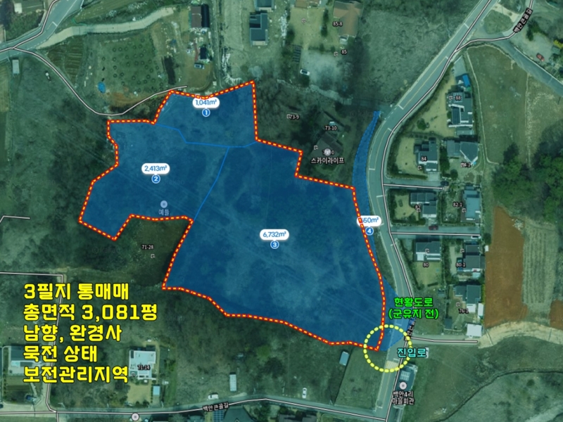 별도의 경작이나 영농 활동은 이루어지지 않고 있는 상태,8M 아스콘포장도로, 현황도로(군유지 전)