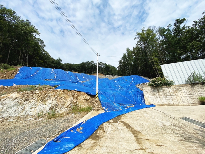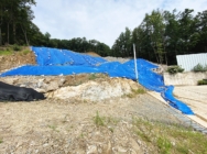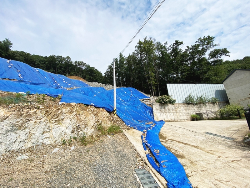 4~6m시멘트도로에서 필지로 진입시 토사와 깨진 석재가 흘러내리지 못하게 천막을 덮어놓은 상태로 진입이 어려우며​