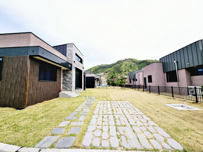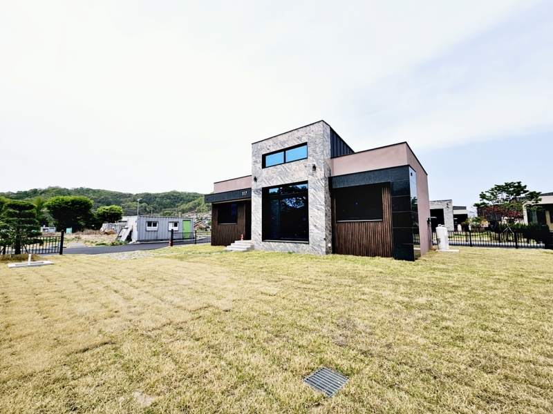 ​ 방2개, 거실, 주방, 욕실2개,경계 철재울타리, 소나무 및 잔디 기본조경