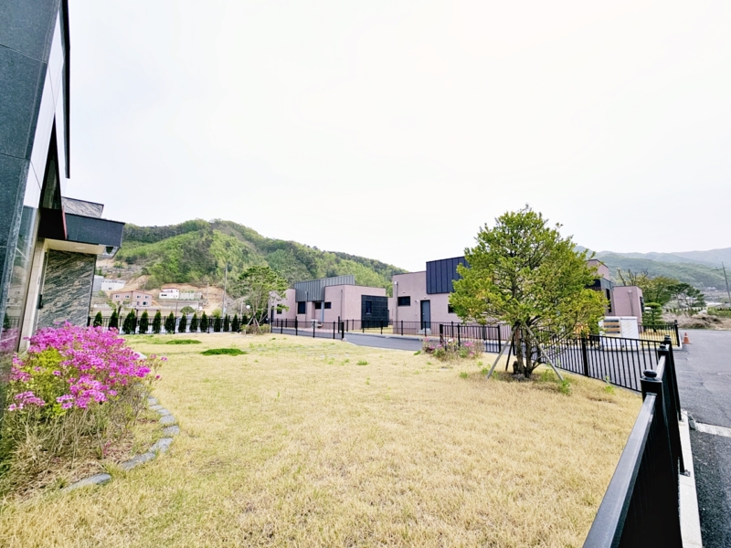 ​방2개, 거실, 주방, 욕실2개,경계 철재울타리, 소나무 및 잔디 기본조경