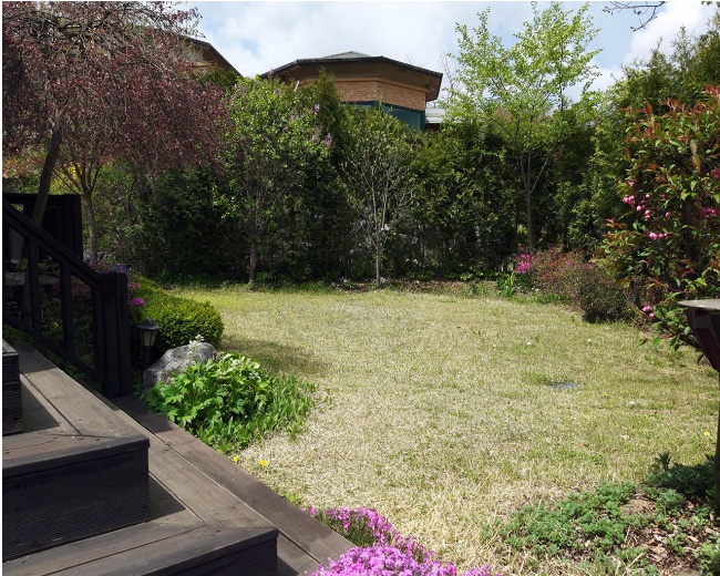 동향, 대99.5평, 도로지분 7.5평, 넓은 데크, 다용도실, 베란다, 차고, 잔디 조경수, 텃밭, 야외수돗가,