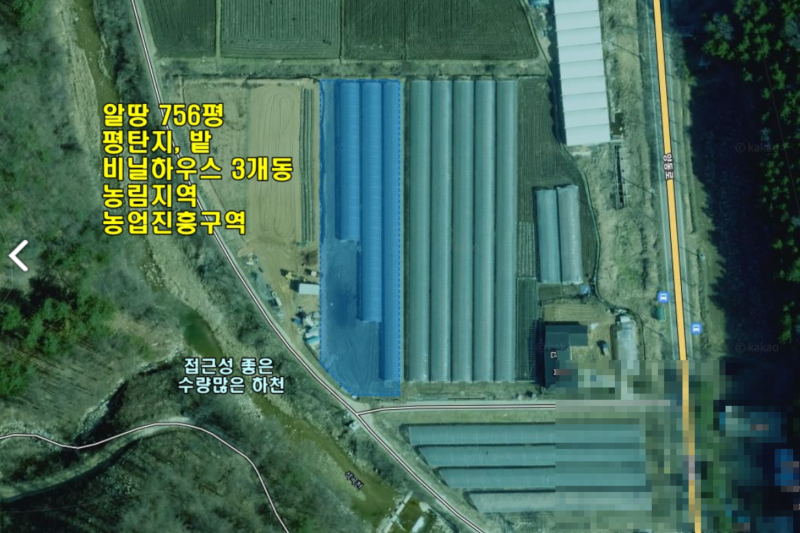 | 간략설명 | 정남향이며 평탄지 전망,농림지역, 농업진흥구역,경지정리된 집단화된 농지 평탄지, 밭으로 사용중,비닐하우스 3개동 있음 현재 아는 형님께 3년 임차계약 상태이며, 올해 계약만료 됨 매매시에는 임차계약 종료조건으로 재계약 작성 예정이라고 함 3~4M 시멘트 포장도로, 공도, 도로 국유지, 2차선 도로 및 버스정류장 100m 거리 양동역 & 양동면사무소 & 생활권 약 6.4km,동양평ic 톨게이트 약 8.9km |