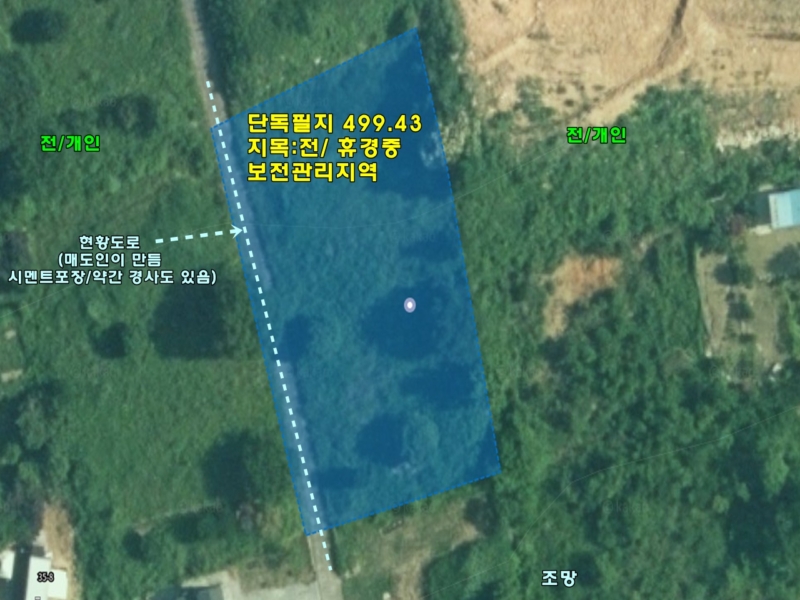 | 간략설명 | 남향, 전1651㎡(499.43평), 완경사/휴경지, 버스/2차선도로 1.5km, 6번 국도 3km, 양평역 및 생활권 5.5km |