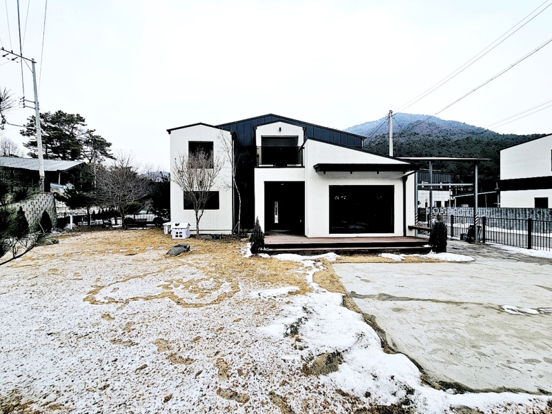 | 간략설명 | 남향, 대431㎡(130.38평), 도로지분38㎡(11.5평), 무상 구거부지 정원공간으로 일부 사용중 - 2021년 준공, 목조주택, 0/2층, 주택 42.9평, 개별지하수, 정화조, 오수관 인입예정, 각방 붙박이장 에어컨, 현관대문 리모컨 자동문, 태양광, 1층 에어컨 (거실 스텐드, 안방 벽걸이), 2층 각방 에어컨 (냉난방기 겸용) 1층 방1개, 거실, 주방, 욕실1개, 다용도실, 2층 방2개, 복도, 욕실1개 (욕조), 복도 외부 테라스 - 소나무 및 잔디 정원조경, 경계 철재 휀스 |