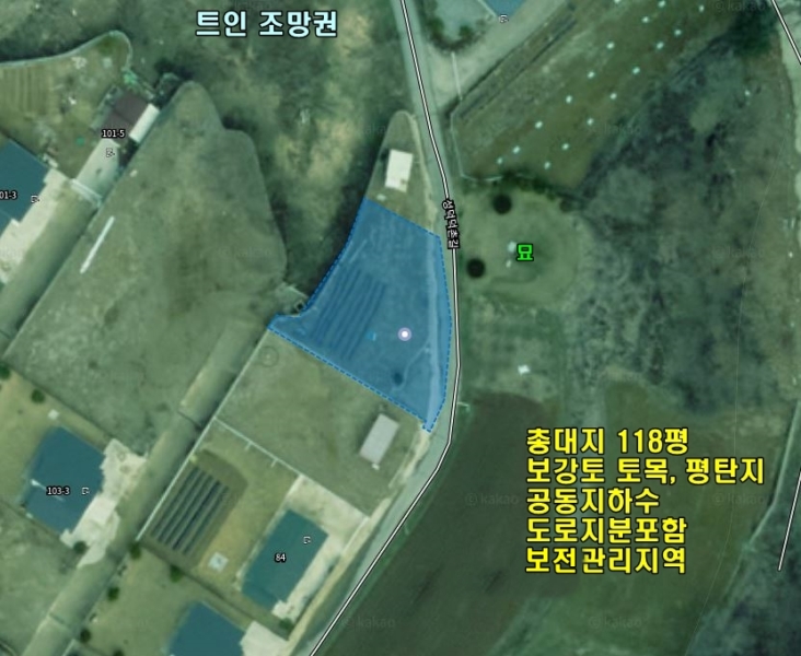 남서향, 전377㎡(114.04평), 도로지분13.1㎡(3.96평), 평탄지/휴경지, 공동지하수, 토목완료