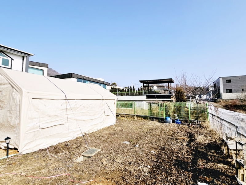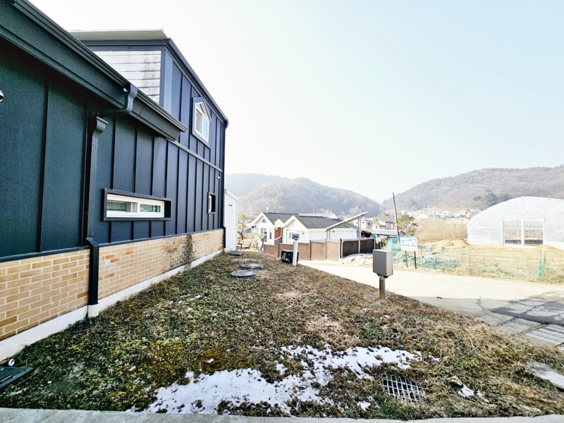 | 간략설명 | 남향, 대토지 419㎡ (126.75평) - 남향이며 정면 트인 전망 나옴, 마을 상수도, 정화조 2019년 준공, 철근콘크리트, 0/1층 구조 주택 81.16㎡ (24.55평) 28년 1월경 만기 임차인 반전세 거주 중 (전세 보증금 5,000만원/ 월 70만원) 황토, 편백나무, 바닥: 강화마루, 이중창, 1층 방 2개, 거실, 주방, 화장실 2개, 2층 다락 공간 - 보강토 토목공사완료, 평탄지 잔디 및 소나무 정원조경 텃밭, 뒷마당 입구, 경계철재 휀스 |